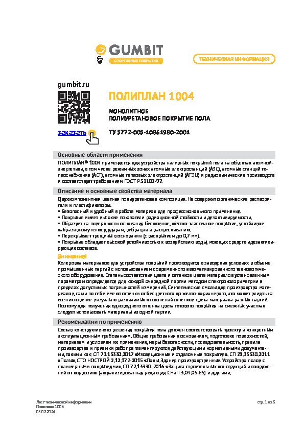 Полиплан 1004 предназначен для обработки покрытий и вспомогательного оборудования на атомных электростанциях, станциях теплоснабжения и других объектах атомной энергетики. Состав разрешается наносить на пол в производственных, технических и складских помещениях.